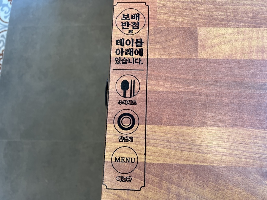 테이블에 이렇게 번호판이 꽂혀있습니다.